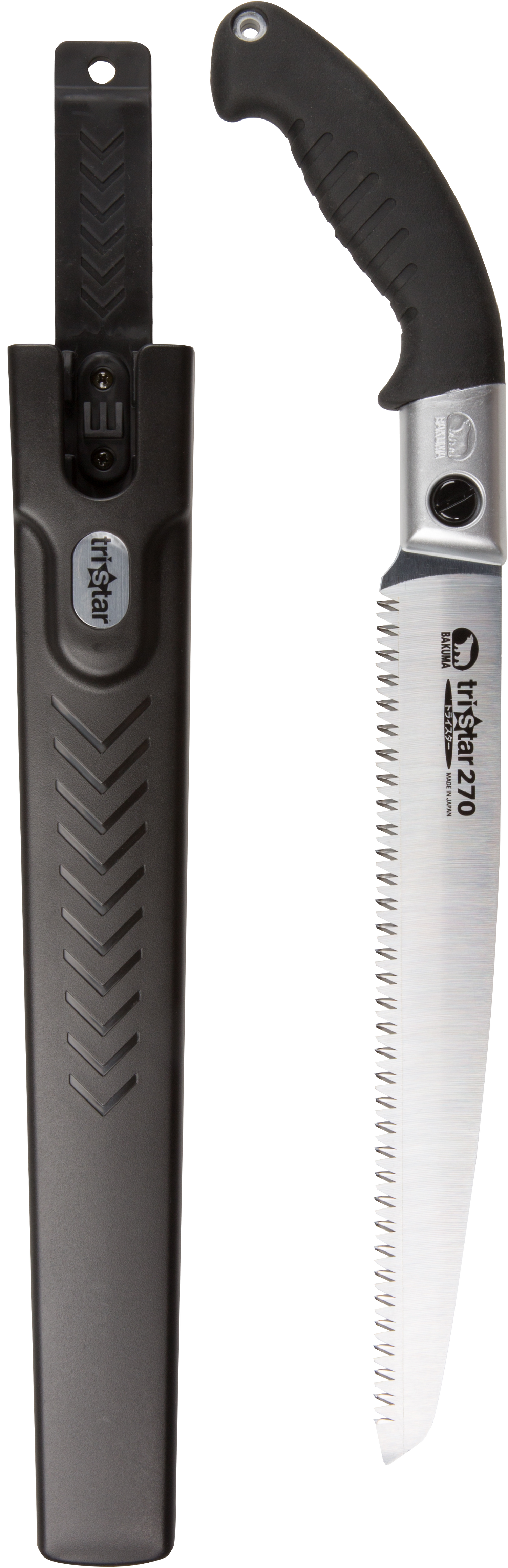 Japanese saws cut on the pull stroke, not the push, giving you more control. The blades are thinner, meaning you get a thinner kerf (the cut) with less effort. Can’t be bad. Bakuma’s Tristar is the ideal saw for garden pruning when a folding saw wouldn’t be big enough: pruning out individual trunks of hazel or sweet chestnut coppice, and general shrub pruning.