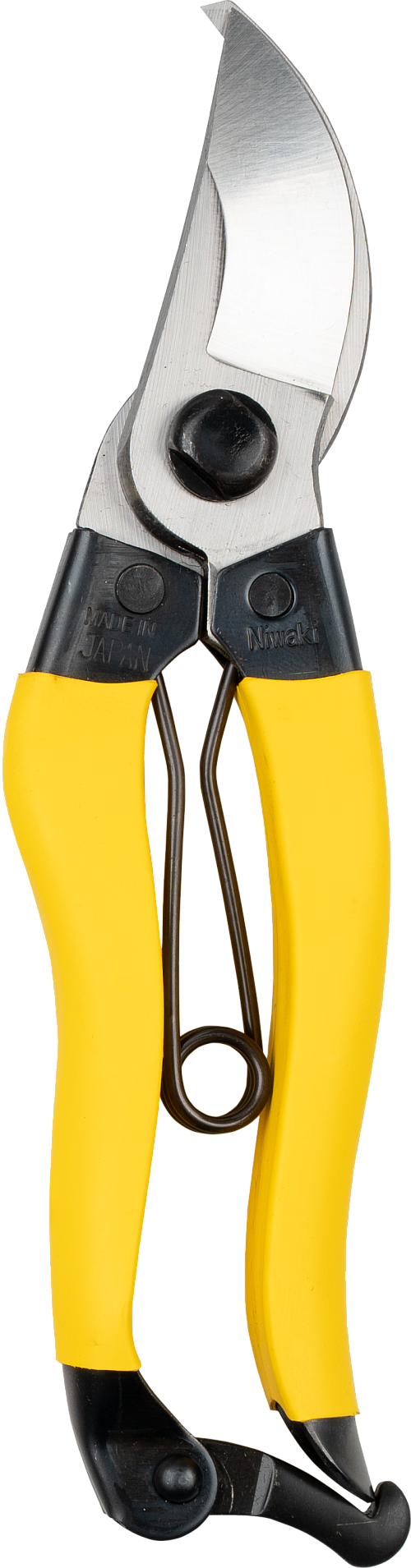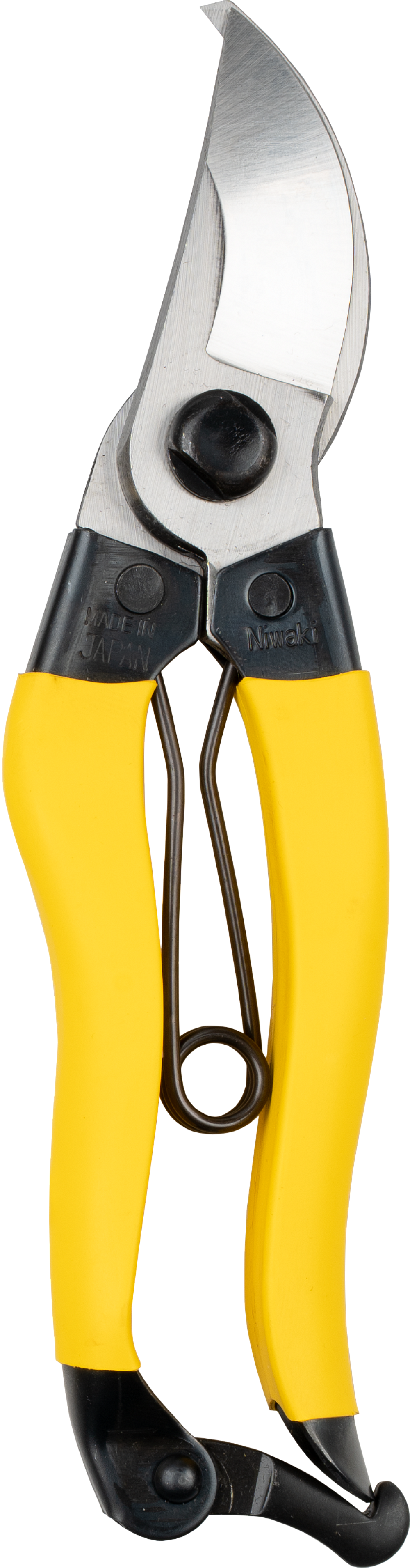 Standard issue in Japan, where these are considered the every day, go-to choice for pruning. The big chunky catch at the bottom has a crisp action that’s easy to use, even with cold wet hands or muddy gloves, and the spring is well secured and never accidentally pops out. As with all Japanese secateurs, these have a simple direct action, resulting in a very clean, efficient cut.