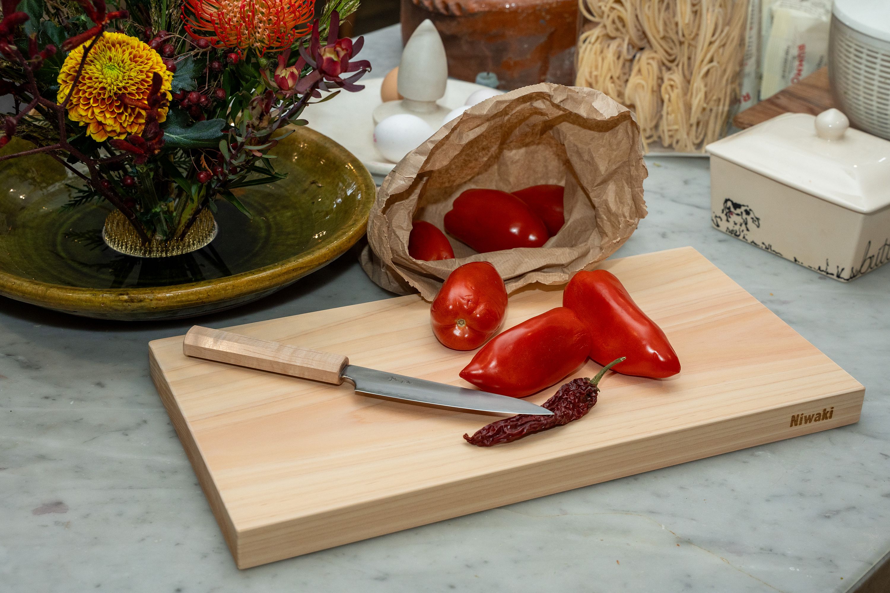 Wooden chopping boards are better for your knives, food, and personal health, but a solid slab of Chamaecyparis obtusa, aka hinoki (aka Japanese cypress), is extra special. The soft wood prevents damage to sharp blades and is resistant to rot and decay. It also has a surprisingly pleasant aroma, should you care about such things.