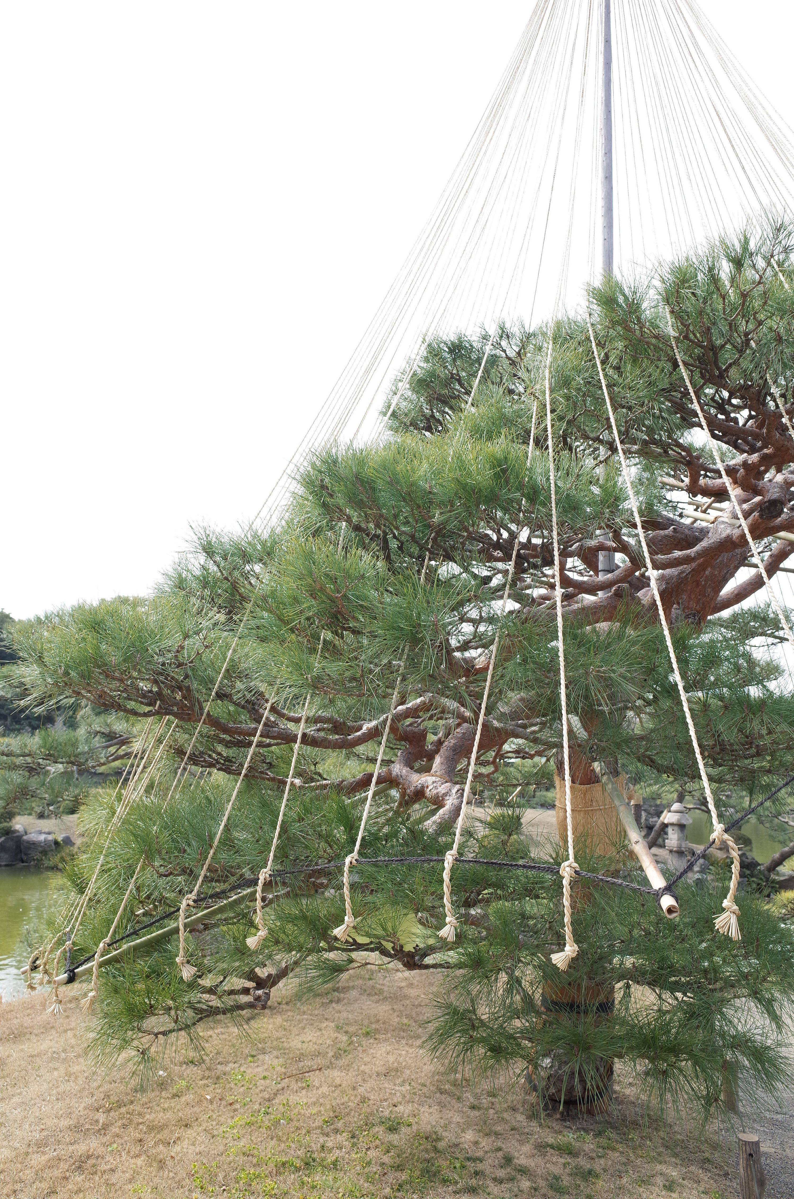 The first, komomaki, involves wrapping straw belts around pine trunks to attract hibernating moths (Dendrolimus). These moths are notorious for defoliating trees by feeding on their needles, making them vulnerable to disease and environmental stress. The straw belts are put in place at the start of winter (rittō) and removed in spring, to be burnt and repurposed as fertiliser. Bad news for the moths, but good news for the tree. While the practice has dwindled due to debates about its overall effectiveness, many still view it as a symbolic gesture marking the arrival of winter in Japanese gardens.